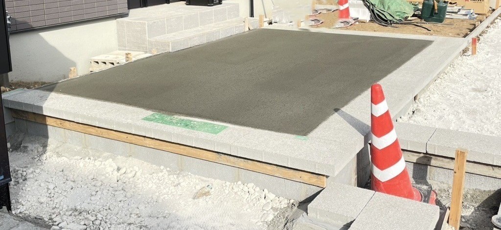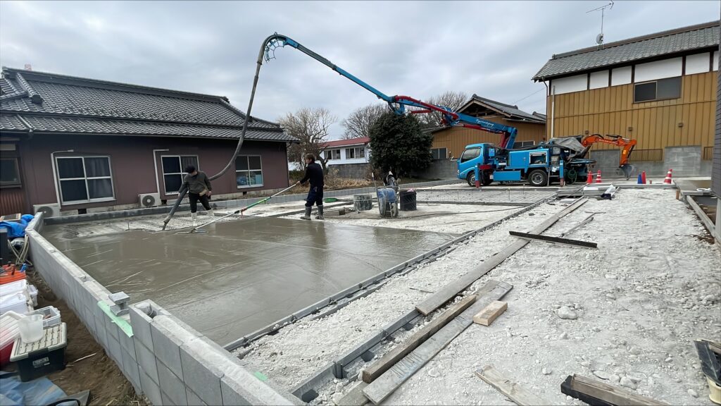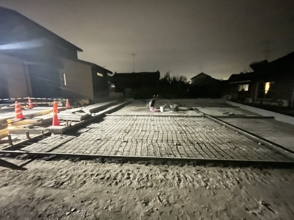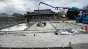 境界土留めの工事も終わり 本日、1回目の生コン打設です。